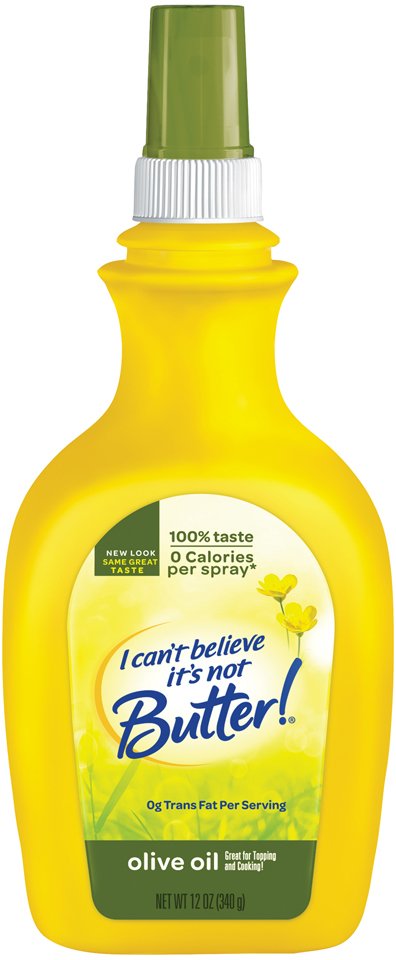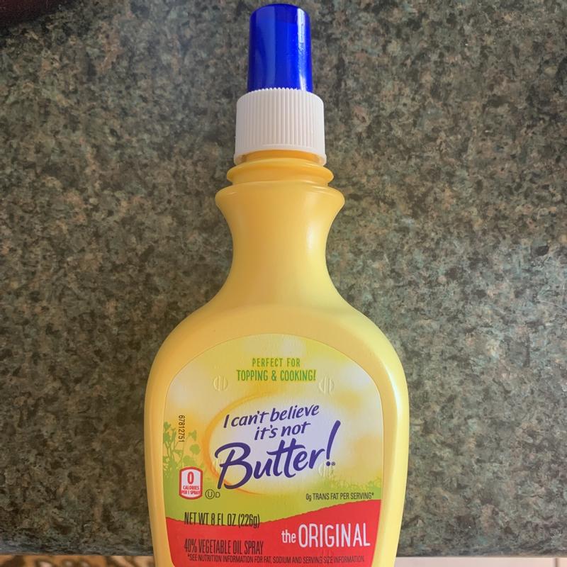 I cant believe its not butter spray. 6 sprays contributes 5 calories 05g fat and 15mg sodium. But after a bit I began unscrewing the cap and pouring it on my potato my oatmeal etc. Any product containing less than 80 is called a buttery spread. Butter extract found in the spice section of Wal-Mart Kroger etc next to vanilla extract and almond extract. The 90s were a dark time for fats but I remember it being particularly bleak for butter. We love it on corn-on-the-cobb which was in season at the time I placed the order.