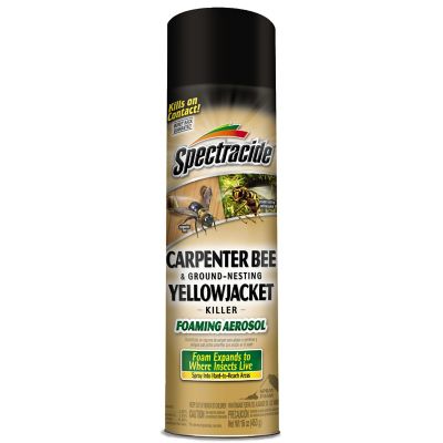 The Spectracide Carpenter Bee and Ground-Nesting Yellowjacket Killer Foaming Aerosol features an expanding foam spray to provide coverage in hard-to-reach areas. They are jet sprays that can be applied from as long as twenty-seven feet.