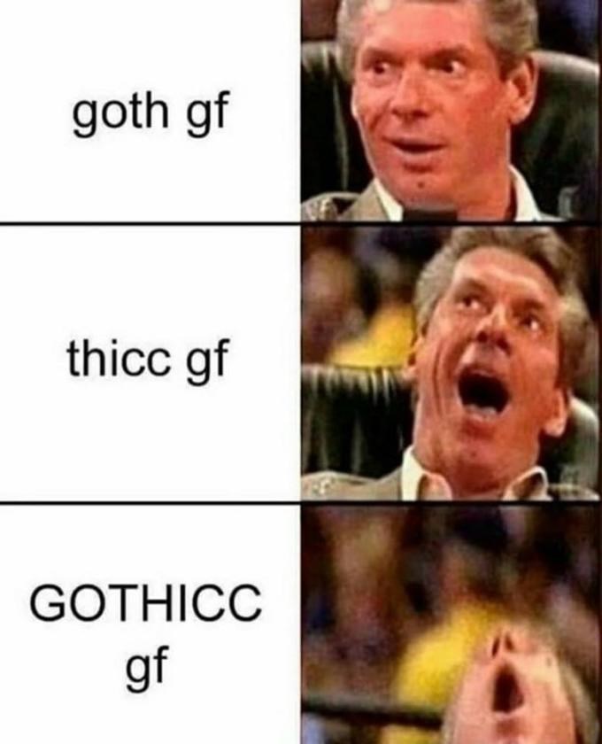 Big goth gf meme. T-shirts stickers wall art home decor and more designed and sold by independent artists. This group is aimed towards lovers of Gothic Fashion and BDSM alike. Big Tiddy Goth Gf.