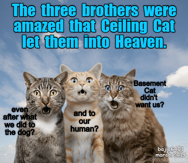 Read on for the best cat memes youll find if youre in need of a pick-me-up. Grumpy cat in heaven meme. Welcome To Meme Heaven Grumpy Cat Memes. Comic artist Seebangnow drew up this wholesome tear-jerking meme about a little dog being admitted to heaven. Anything you want is yours for the asking. In heaven all three faced God who wanted to know what they believed in. Read This 28 Grumpy Cat Memes Heaven. Animal Meme Relationships Cat Grumpy Heaven Memes 28. Grumpy Cat World Bids Farewell To Meme Sensation.